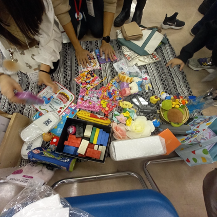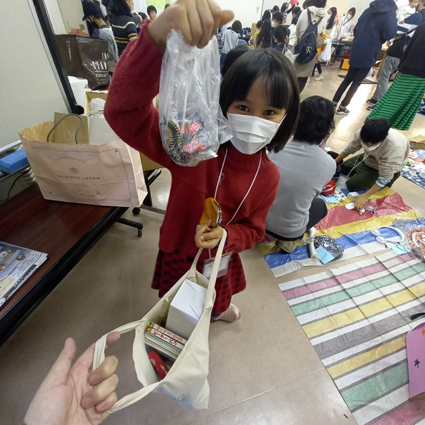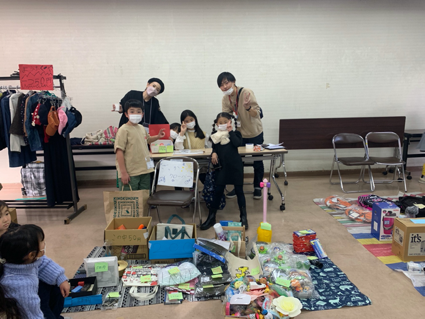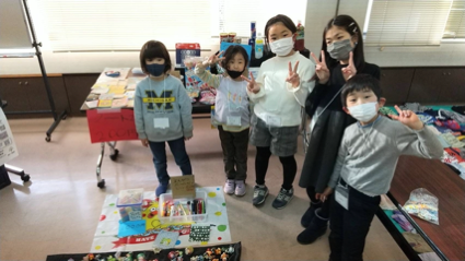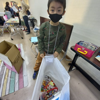 参加者の皆さんには家では使わなくなったけど、みんなに使って欲しいものをお家から持ってきてもらい本屋さん、雑貨屋さん、洋服屋さん、文房具・食料品屋さん、電化製品、大きいもの屋さん、おもちゃ屋さんに分かれて6つのお店屋さんを開きました。