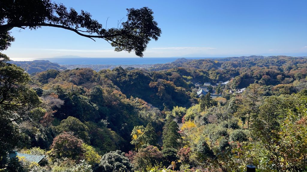 山頂では写真をとり、鎌倉の街並みが見える場所で少し休憩しました。