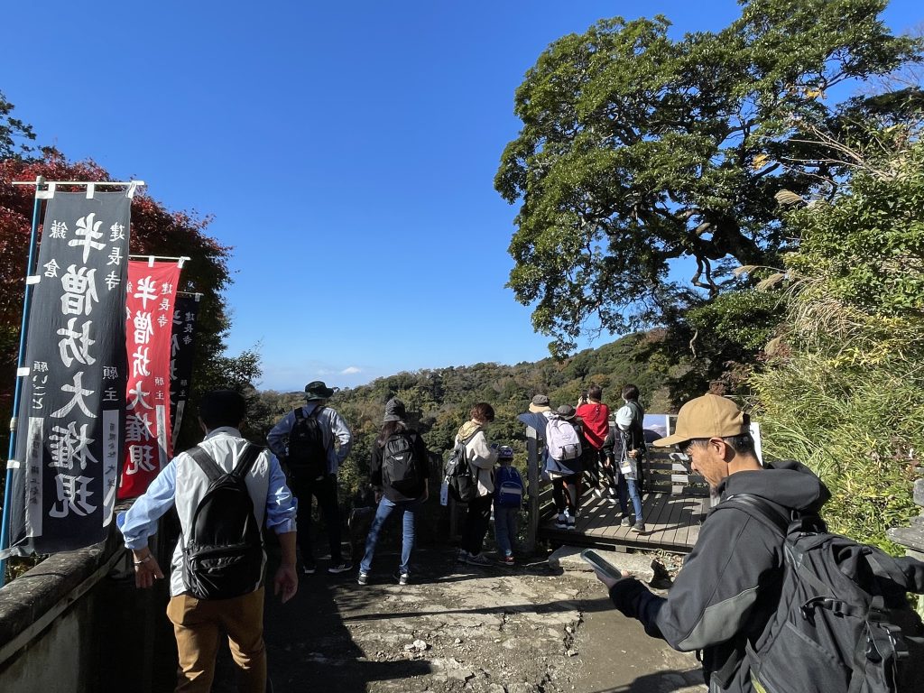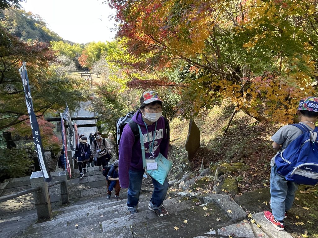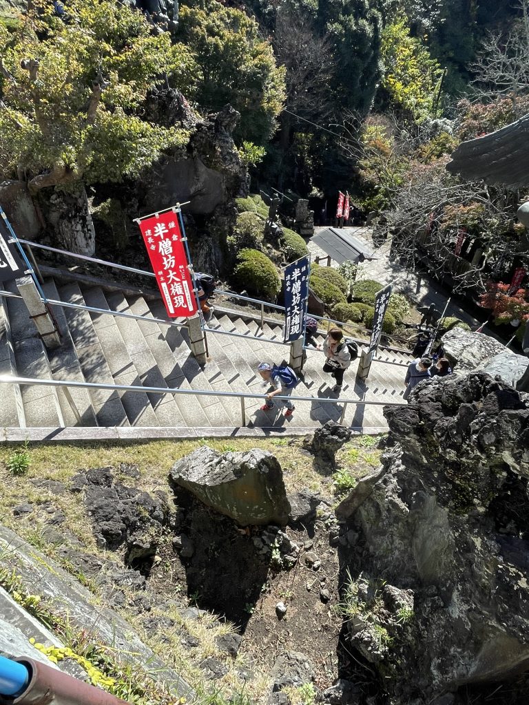 建長寺を歩いていくと、急な階段が現れてきます。ハイキングコースに入る手前で大きな試練です。みんな頑張って登っていきました。(スタッフがいちばん疲れていた)
