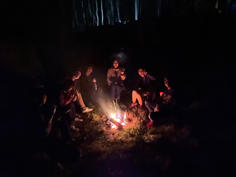 今回の研修キャンプでは焚火を8人で囲み、焼きマシュマロや焼きスルメ、歌を歌ったりしました。